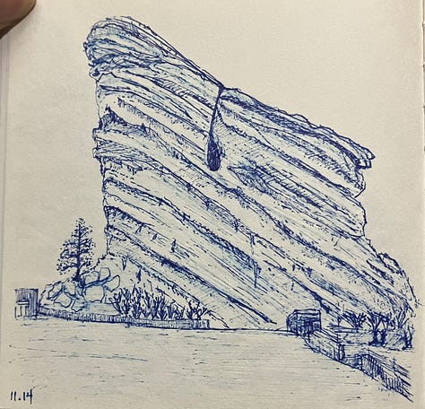 Recuerdos a través del croquis. En las montañas de Colorado, en un rincón de Evergreen, y en el magnífico escenario de Red Rocks.